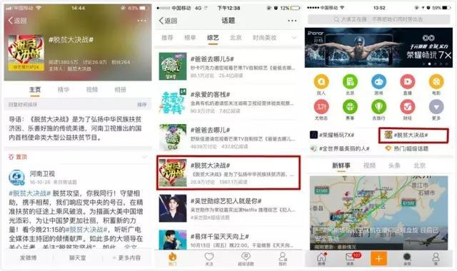 節(jié)目播出至今,“脫貧大決戰(zhàn)”早已在網(wǎng)絡(luò)社交平臺上引起了網(wǎng)友熱議。人民網(wǎng)、光明網(wǎng)、央視網(wǎng)、中國網(wǎng)、環(huán)球網(wǎng)、騰訊、新浪、網(wǎng)易、今日頭條、百度等數(shù)百家媒體進(jìn)行轉(zhuǎn)載,新浪微博、微信公眾號等大量自媒體號廣泛傳播。統(tǒng)計(jì)顯示,截至11月30日,《脫貧大決戰(zhàn)》在新浪微博話題綜合榜上排名第七,全國綜藝榜排名第二,新浪微博閱讀量達(dá)到了7990萬。