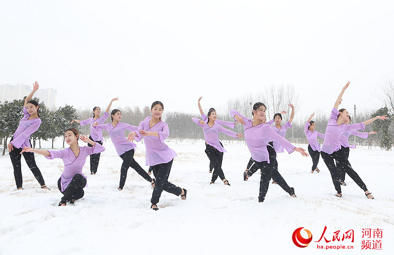 雪中起舞展芳華 河南200名女大學(xué)生凌寒怒放