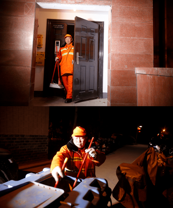 2017年1月12日,04:30,此時室外溫度-2℃ 。62歲的環(huán)衛(wèi)工人唐師傅穿著黃色環(huán)衛(wèi)工作服,帶上清掃工具,騎上電瓶車,準備出門,開始一天的工作。